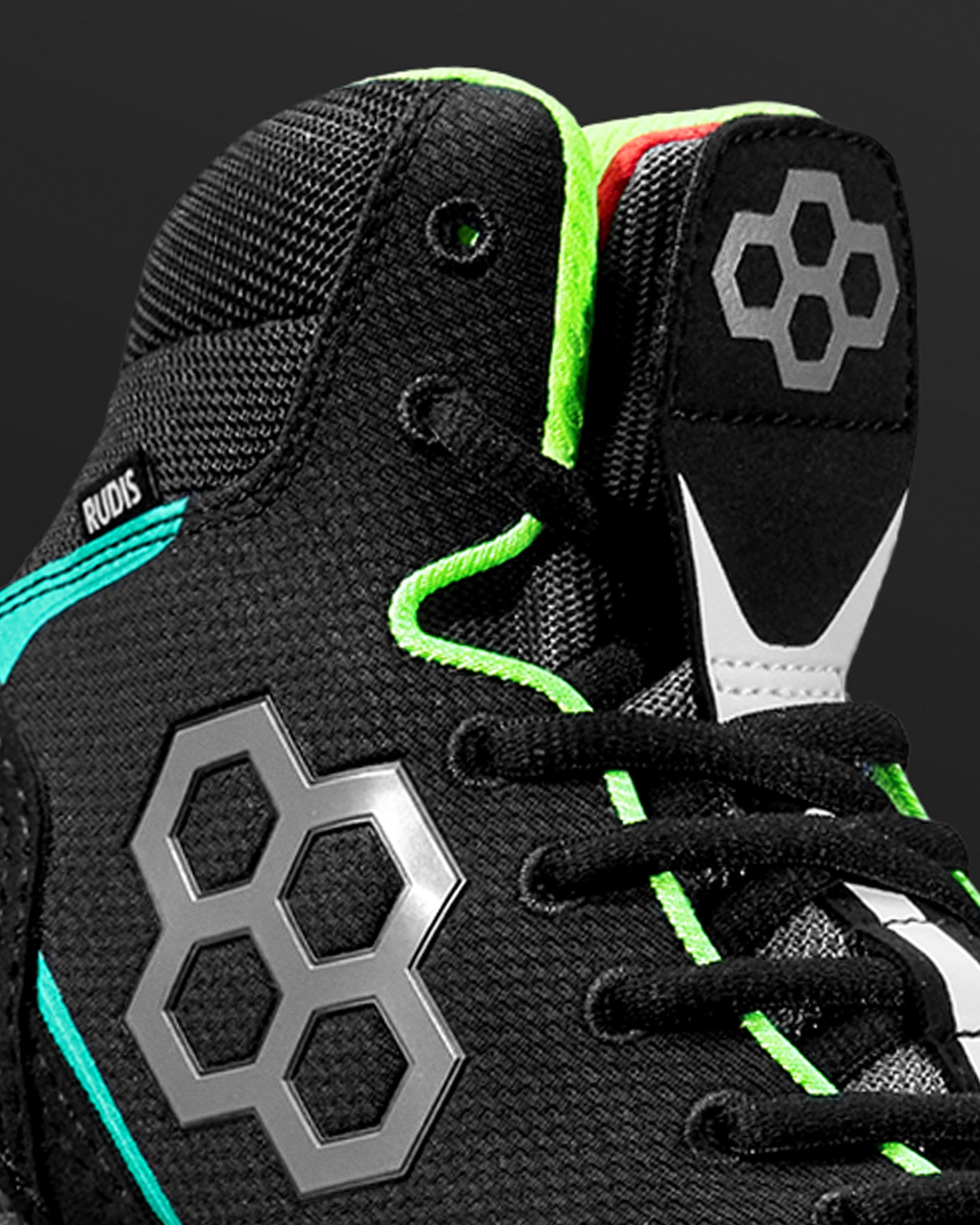- Tongue Gusset is an ergonomic and narrow tongue design that prevents bunching while the internal flexible gusset keeps the tongue aligned in in the proper position. The RUDIS lace garage covers up any loose ends that might hang free or get in the way.